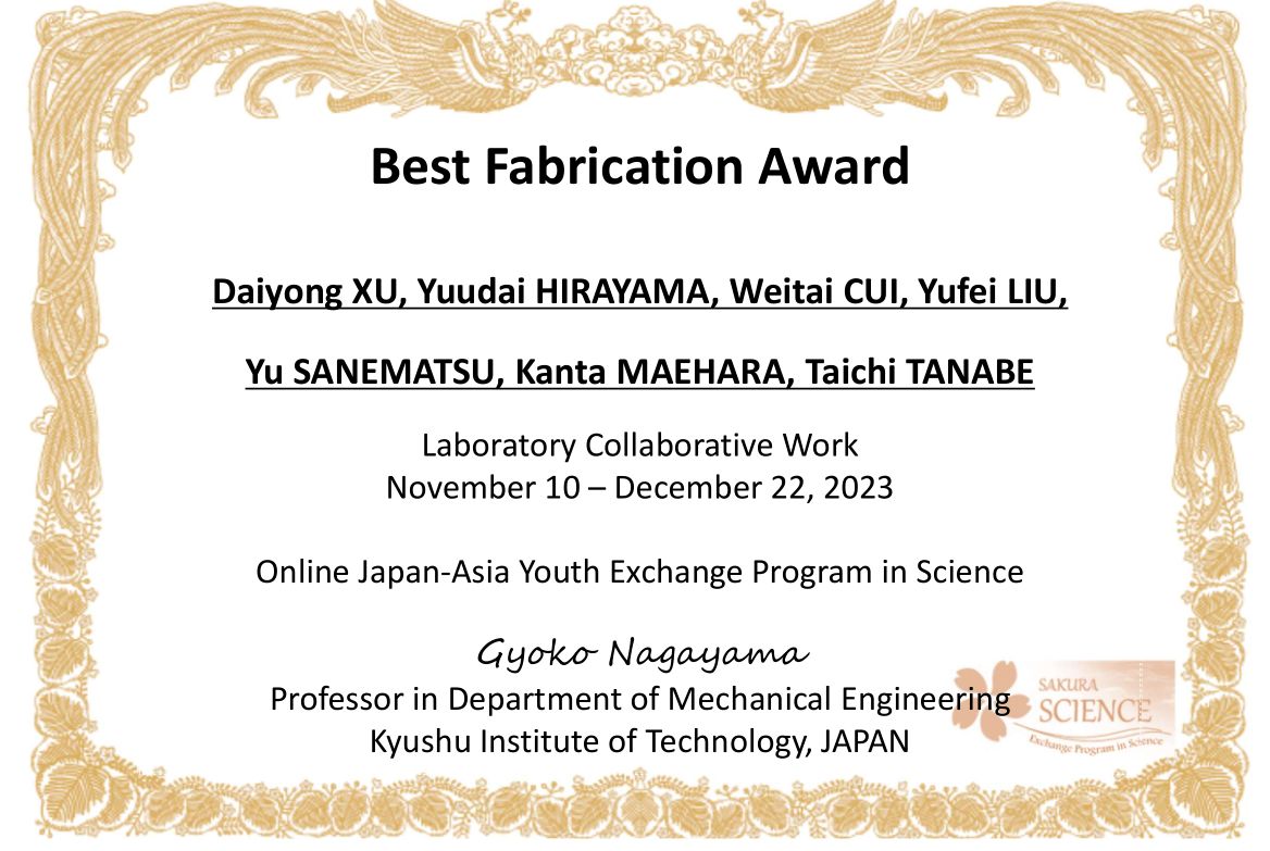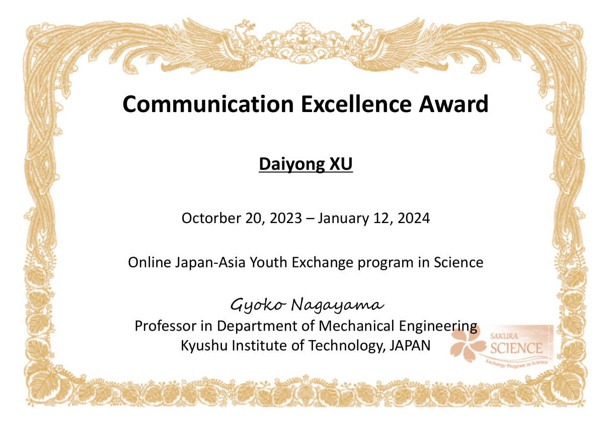 根据线上交流会的表现,本校的徐岱勇同学被选中前往九州工业大学参加线下交流活动,时间为2024年6月9日至6月14日。