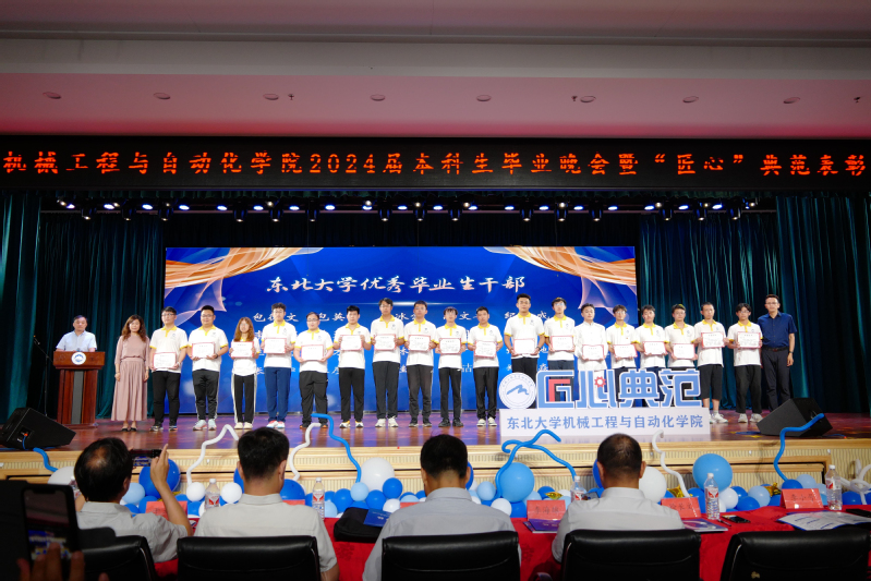 6月26日,机械工程与自动化学院举行“廿廿不忘,毕有回想”2024届本科生毕业晚会暨“匠心”典范表彰仪式在大学生活动中心多功能厅举行。创新创业学院常务副院长李鹤,学生指导服务中心主任刘云飞,学生工作处副处长徐长文,校团委副书记郑兴燕,机械工程与自动化学院党委书记李海雄、执行院长于天彪、党委副书记兼副院长孙坤,学院获奖教师和班导师代表,学生工作办公室辅导员以及2024届毕业生参加晚会。