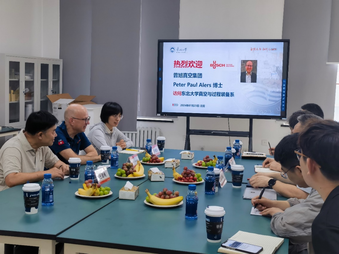 在与东北大学真空与过程装备系教师的座谈会上,Peter Paul Alers博士认真听取了东北大学真空专业发展历史和发展现状的介绍,向与会教师介绍了普旭集团(Busch Group)的基本情况。双方坦诚交流了对真空技术发展的前景认识,一致表达了进一步加强合作交流的愿望。