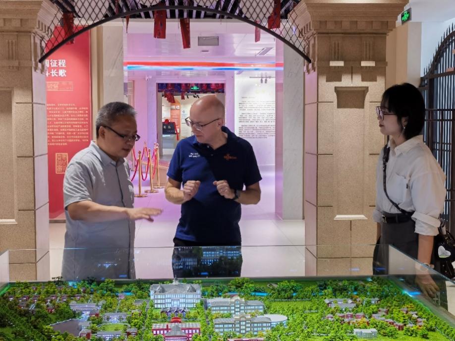 在东北大学校史馆,Peter Paul Alers博士饶有兴趣地了解了东北大学的基本情况、办学历史、办学水平等,对东北大学的悠久历史、深厚沉淀和扎根新型工业化发展做出的巨大贡献和取得的丰硕成果表示赞赏。