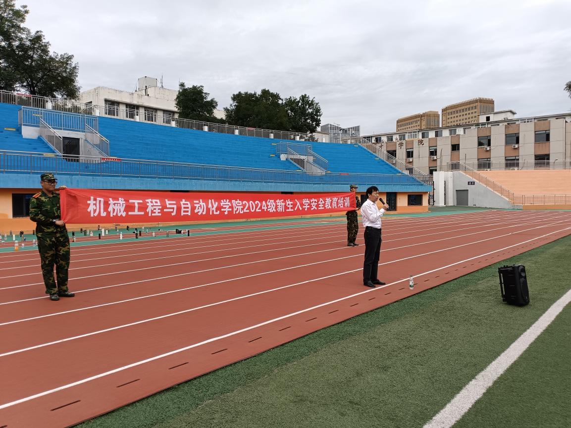 9月11日上午,机械学院举行2024级本科新生入学安全教育培训,学院执行院长于天彪,副院长田畅出席。活动由大一新生辅导员王天祺主持。安全教育培训现场设在学校五四运动场大一新生军训现场,500余新生精神饱满、队伍整齐划一,聆听院长给他们上的大学第一课:安全教育培训。