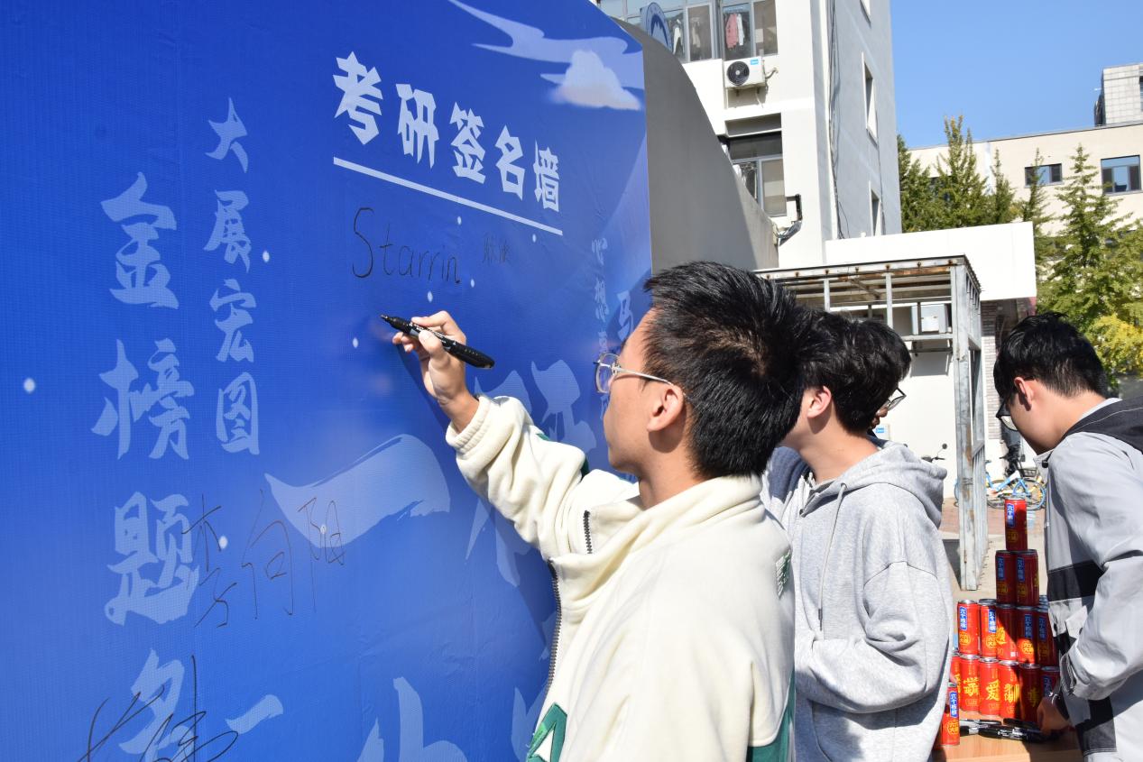 值此考研倒计时66天之际,活动邀请全体2025届本科毕业生参与其中,为考研学子送上温馨祝福。活动中,同学们在签名墙上签下自己的名字,写下对彼此的祝福,激发了考研学子们的学习激情。