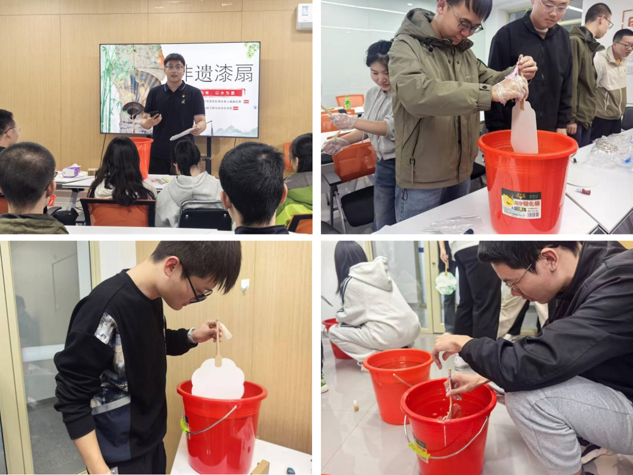 在“指尖艺术,传承经典”——漂漆团扇制作体验活动中同学们通过学习了解并亲身体验了中华非物质文化遗产——漆扇的制作工艺与文化底蕴,进一步加强了同学们的文化自信,同学们也表达了要将这种中华传统文化传承下去的决心。