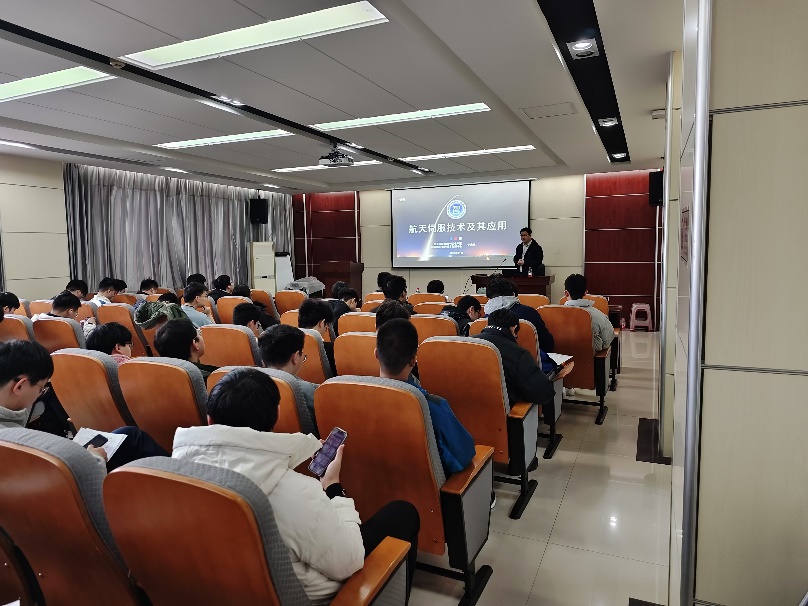 在本次报告中,于志远研究员首先介绍了运载火箭推力矢量控制和飞行器空气动力控制伺服系统概念内涵、工作原理和主要特性、关键技术问题以及未来发展趋势,针对基于负载匹配和能量管理的伺服系统多学科联合仿真和综合优化设计技术、基于再生电能管理和综合利用的组合式伺服动力电源设计技术、永磁同步伺服电极限性能设计方法和精确热设计技术、精密机械传动等关键技术进行探讨,随后对航天、航空、航海作动系统和操纵系统的特点进行分析和论述,介绍了航天伺服技术向航空、航海和智能机器人等领域转化应用的主要思考和成果。最后,于老师总结了目前研究所遇到的困难与未来的研究方向。报告后的问答环节中,同学们积极与于志远研究员进行交流研讨。