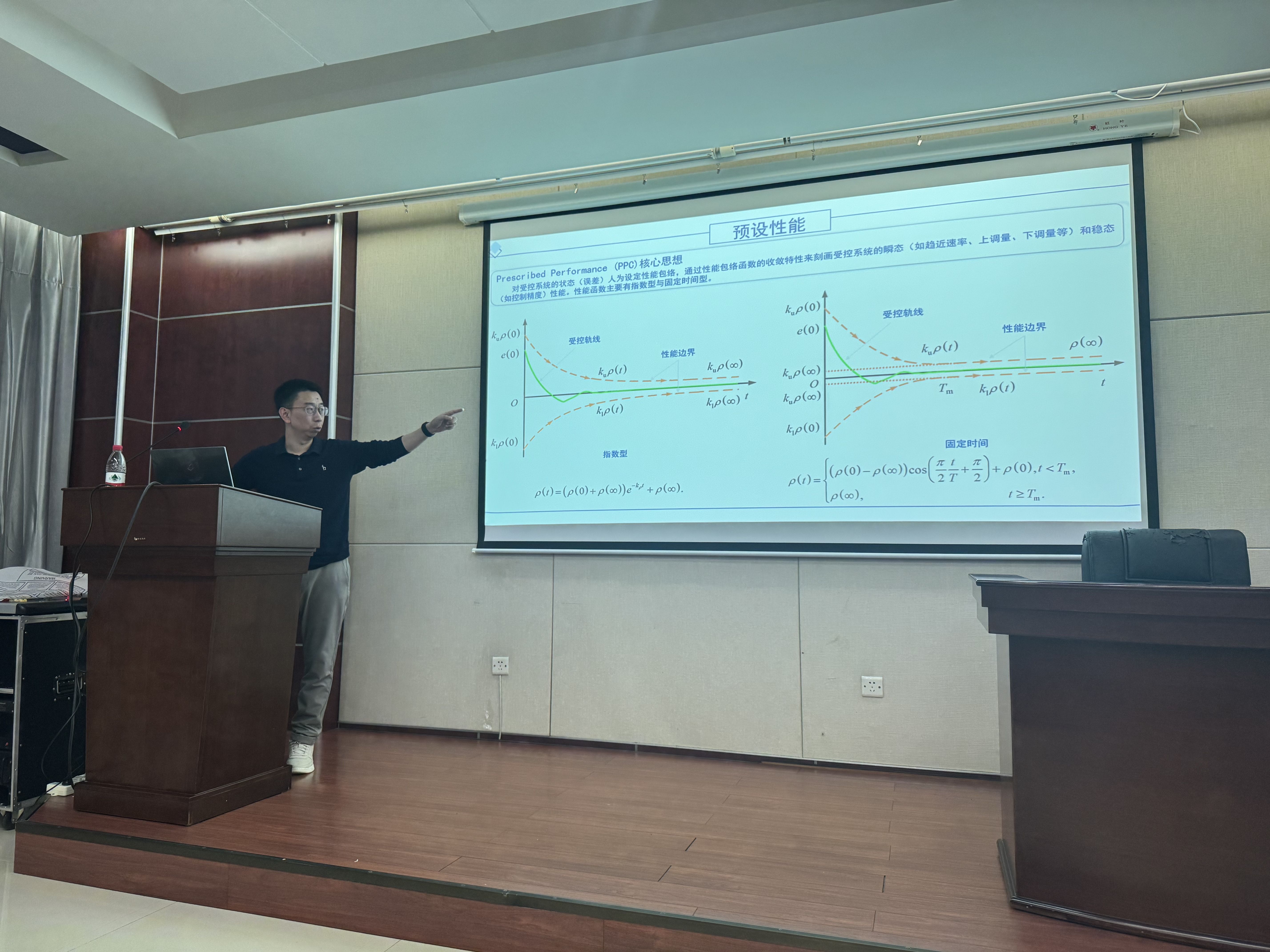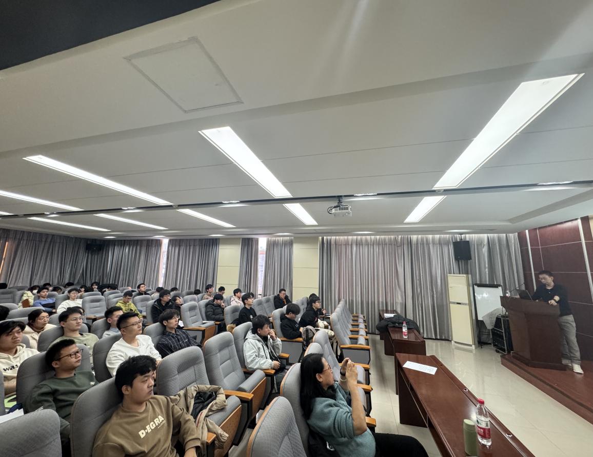 在本次报告中,梁忠超教授首先介绍了个人求学经历和工作经历。随后梁教授从无人驾驶、多机器人和多级指挥调度系统三个方面来介绍无人驾驶汽车与多机器人系统在智能控制领域的前沿方向,以及它们在社会价值和应用前景方面的重要性。在报告中,梁教授分析了多机器人系统在高容错性、灵活性及强大的环境适应能力方面的优势,特别是在灾害救援和太空探索等极端场景中的应用。最后,梁教授分享了其团队在复杂环境下无人驾驶汽车和多机器人分布式控制方面的研究成果,包括基于非线性动力学理论的智能控制框架,以及针对视觉传感器的视野约束问题的切换策略等方法,并讨论了这些技术如何提升无人驾驶汽车在极端环境中的智能化与稳定性,增强多机器人系统在复杂任务中的协作效率和鲁棒性,以及实现智能控制技术的理论发展与实际应用的融合。整体报告过程氛围融洽,梁教授分享的知识深入浅出,老师和同学们积极地进行交流研讨。
