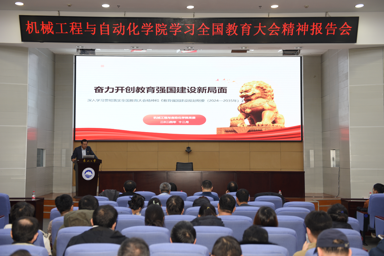 12月13日,机械工程与自动化学院在主楼822室召开学习全国教育大会精神报告会。本次报告会邀请了校宣讲团成员、国际合作与交流处副处长汪滢滢作专题宣讲,学院领导班子及全体教师参会。报告会由学院党委副书记、副院长(兼)孙坤主持。