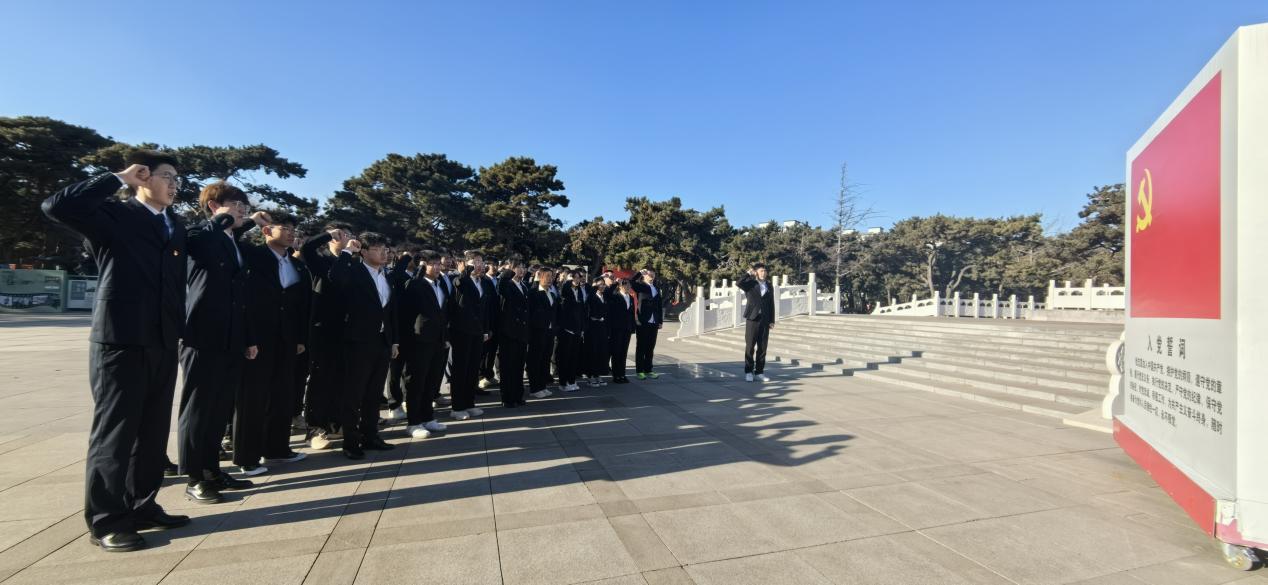 到达烈士陵园后,全体师生党员瞻仰了革命烈士纪念碑,并在烈士纪念广场举行悼念仪式。在奏唱中华人民共和国国歌后,全体肃立,向烈士默哀,深切缅怀革命先烈功绩,表达对英烈的深切悼念和无限敬仰之情,随后,全体师生党员依次向抗美援朝烈士敬献鲜花。在入党誓词面前,党员们又一次回望入党初心,坚定理想信念。