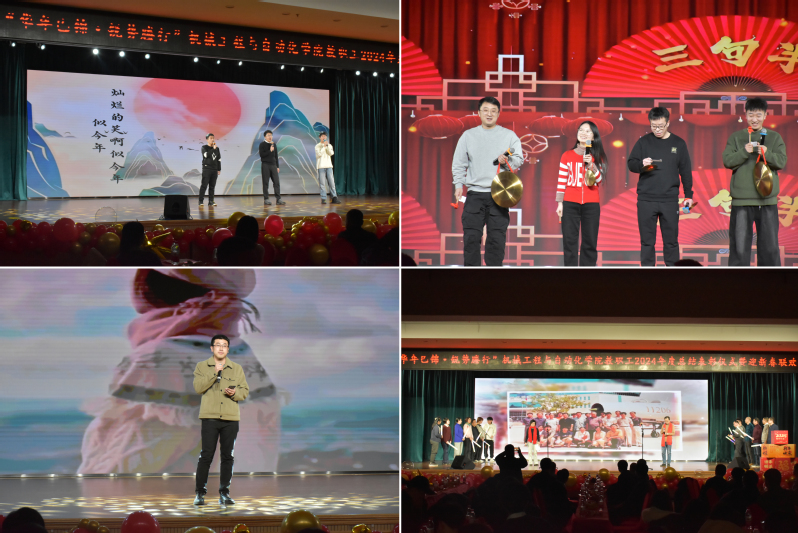 1月17日下午,机械学院2024年度总结表彰仪式暨迎新春联欢会在大学生活动中心多功能厅隆重举行,闻邦椿院士、学院领导班子成员及全体教职工齐聚一堂,共同回顾过去一年的丰硕成果,展望未来的发展蓝图,同时在欢乐祥和的氛围中迎接新春佳节的到来。本次晚会以“年华巳锦,锐势螣行”为主题,寓意着在新的一年里我院师生能够发挥才智,勇于攀登,不断突破自我,共同创造更加辉煌的未来。