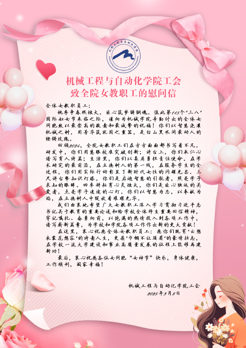 机械工程与自动化学院工会致全院女教职工的慰问信