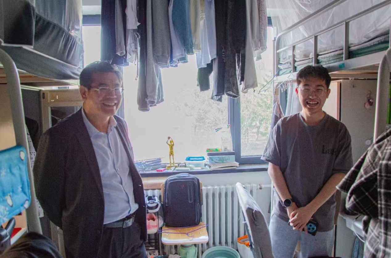 郝建山聚焦学生实际,从生活管理、安全隐患、风险排查等多个方面,与学生细致深入交流,全面、系统地了解寝室具体情况。各寝室环境良好,学生学习生活井然有序。