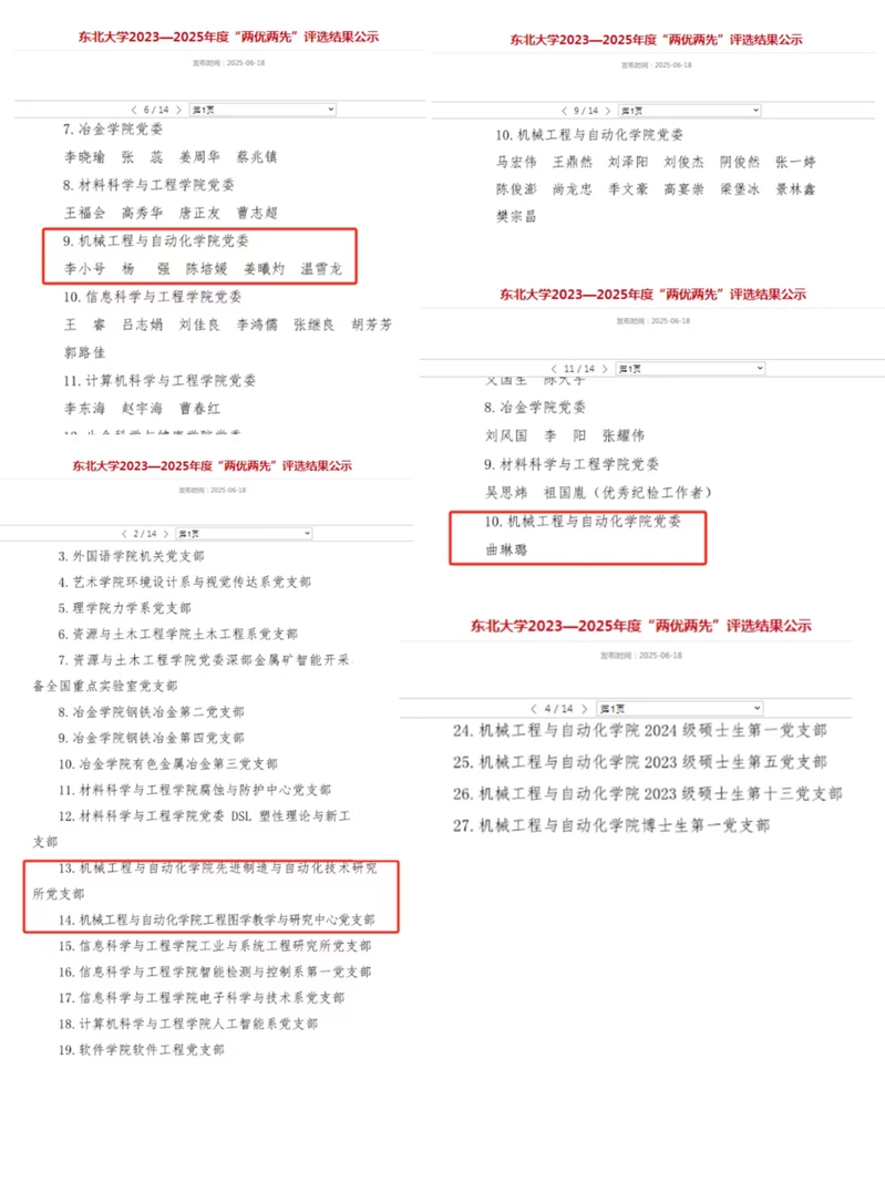 近日,东北大学2023—2025年度“两优两先”评选结果正式公布,机械学院在多个奖项中获奖,其中教工5人获优秀共产党员、1人获优秀党务工作者;学生12人获优秀共产党员、5人获优秀学生党支部书记,在集体奖项中教工2个支部、学生5个支部获先进党支部。本次评选展现出学院在党建引领下,师生积极进取、奋勇争先的精神风貌与卓越成果。