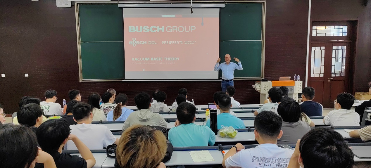 Peter Paul Alers博士现任普旭集团总部产品经理,是普旭全球顶尖真空专家,在半导体、新能源电池等尖端科技领域拥有丰富的真空系统研发经验。Peter Paul Alers博士凭借其渊博的学识、丰富的工程经验以及深入浅出的讲解,为师生们呈现了一场真空科技前沿的学术盛宴,激发了同学们对真空技术未来发展的浓厚兴趣。