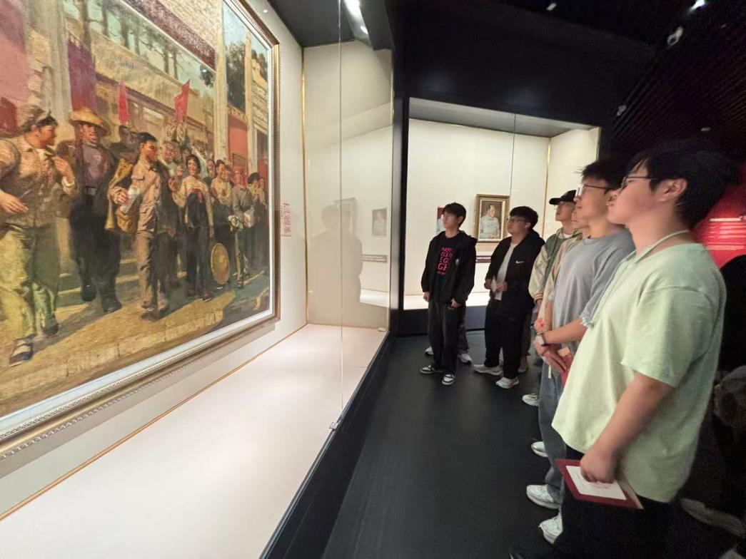在沈阳博物馆“丹漆重彩忆峥嵘”展厅,同学们参观了“纪念中国人民抗日战争暨世界反法西斯战争胜利80周年油画修复成果展”,聆听讲解员讲授的专题思政课,深入了解杨靖宇、赵一曼等革命先烈的英雄事迹,诵读抗战家书,感悟家国情怀。通过沉浸式参观和讲解,同学们更加深刻地认识到革命精神的时代价值,纷纷表示要继承先辈遗志,将个人理想融入民族复兴的伟大事业中。