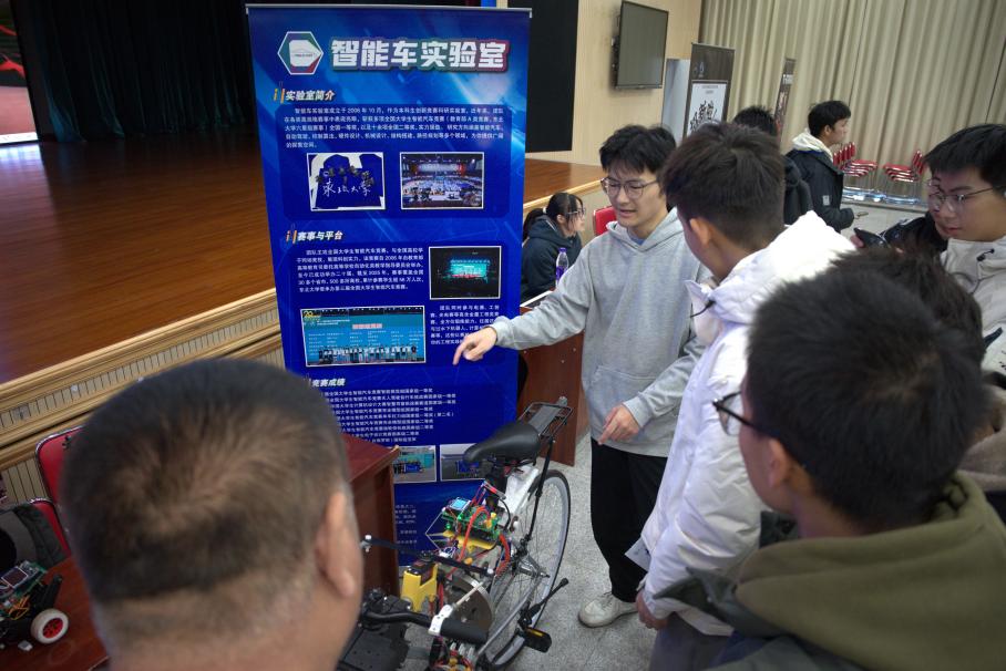 在展板学习区,同学们驻足了解机械振动控制、仿生机械等前沿技术,感悟闻邦椿院士的工匠精神;在实验室成果体验区,TDT实验室和先进成图实验室的“黑科技”作品吸引了众多目光,仿生机械臂、智能车等项目让机械原理“动”了起来;手工实践区和鲁班锁挑战区则以创意和智巧为核心,让同学们在拼装与思考中体会机械结构的精妙与逻辑。