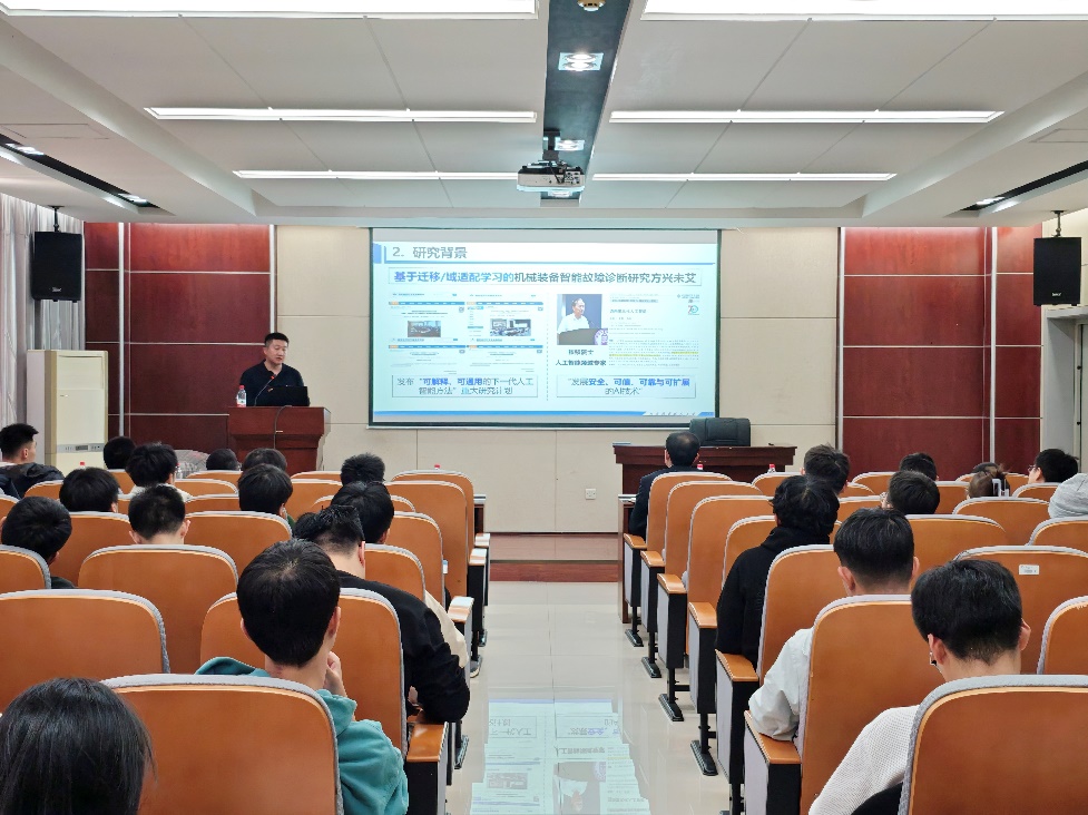 2025年11月11日下午15:00,机械工程与自动化学院“闻智讲堂”专家学者报告会在南湖校区新机械楼513会议室举行。本次报告会特别邀请到北京航空航天大学可靠性与系统工程学院焦金阳副教授主讲,报告题目为“面向可通用智能诊断的迁移适配方法研究:从有源到无源”。学院相关专业领域的教师及学生参加本次学术活动。报告会由机械工程与自动化学院李雷老师主持,学院副院长罗忠教授出席。