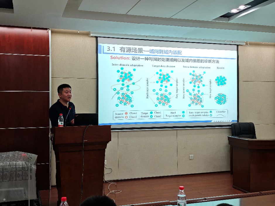 在工程化应用探讨环节,焦金阳副教授重点分析了有源迁移方法的现实困境。他强调,将有源方法部署到实际场景时,不仅面临源数据传输与存储的沉重负担,开放源数据更可能引发隐私泄露风险,这些问题已成为制约技术落地的主要障碍。为此,他创新性地提出无源条件下的模型泛化与迁移诊断技术,为解决工程化难题开辟了新路径。针对无源迁移适配过程中的新挑战,焦金阳副教授进行了细致解读。他表示,性能遗忘、模型架构隐私与固化、诊断结果不可信等问题,是无源技术发展必须跨越的障碍。结合团队在模型优化、隐私保护、可解释性方面的研究积累,他系统阐述了相应的解决理论与实现方法,明确了从“实验室理论”到“工程化应用”的转化路径,让在场师生对技术落地前景有了更直观的认识。