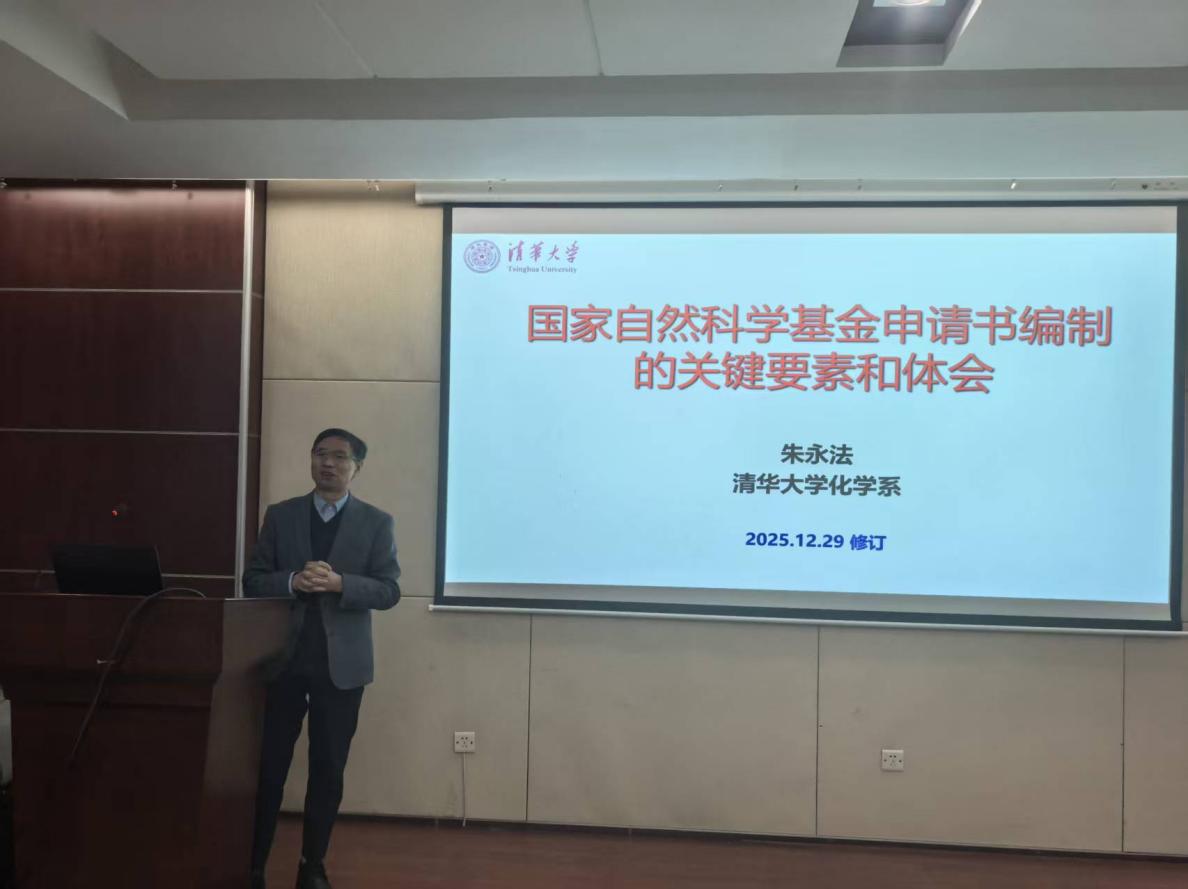 清华大学朱永法教授应邀作“国家自然科学基金申请书编制的关键要素和体会”专题报告。他结合多年评审与申报经验,从科学问题凝练、研究内容设计、创新点表达等方面进行了系统讲解,并分享了申请书撰写的实用技巧。