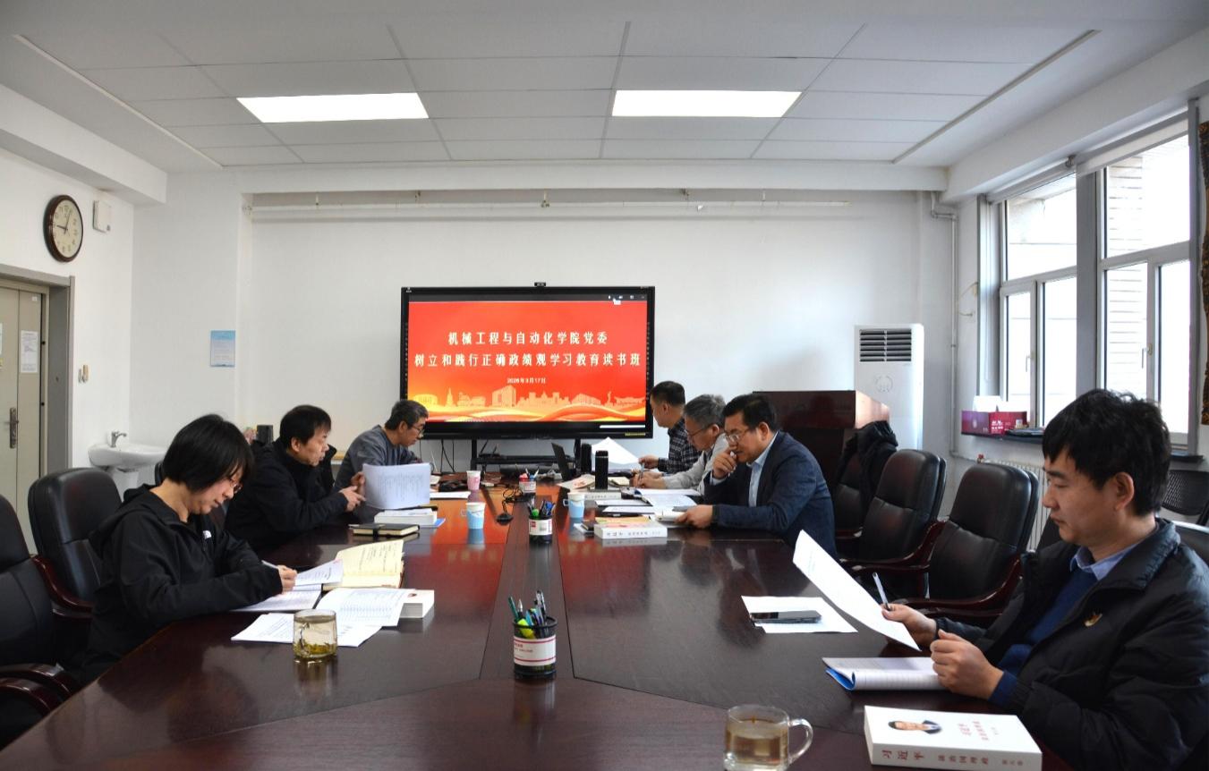 3月17日,机械学院党委在机械楼206会议室开展领导班子树立和践行正确政绩观学习教育读书班第一次集体学习。学院党委书记郝建山领学习近平总书记关于树立和践行正确政绩观的重要论述,学院执行院长于天彪领学《习近平谈治国理政》第五卷中关于建设教育强国的有关篇目。学院全体班子成员参加读书班并参与研讨学习。