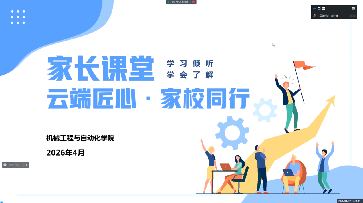 为深化家校协同育人机制,引导学生科学规划职业发展,4月2日,机械工程与自动化学院通过线上会议形式举办“云端匠心·家校同行”家长课堂。活动邀请毕师父创始人兼CEO童部林担任主讲,围绕当前就业形势、求职技能与心态调整等方面,结合行业最新数据,深入剖析人才市场供需现状,为学生把准就业方向提供专业指导。