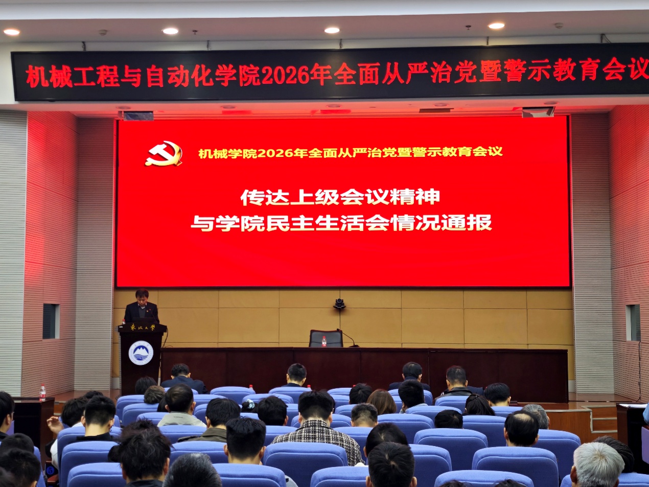 会上,于天彪传达了学校2026年全面从严治党相关会议精神,并通报了机械学院民主生活会有关情况。会议强调,要持续提高政治站位,深刻领会党中央关于全面从严治党的新部署新要求,切实把思想和行动统一到上级决策部署上来,把全面从严治党要求贯穿学院事业发展全过程各方面。